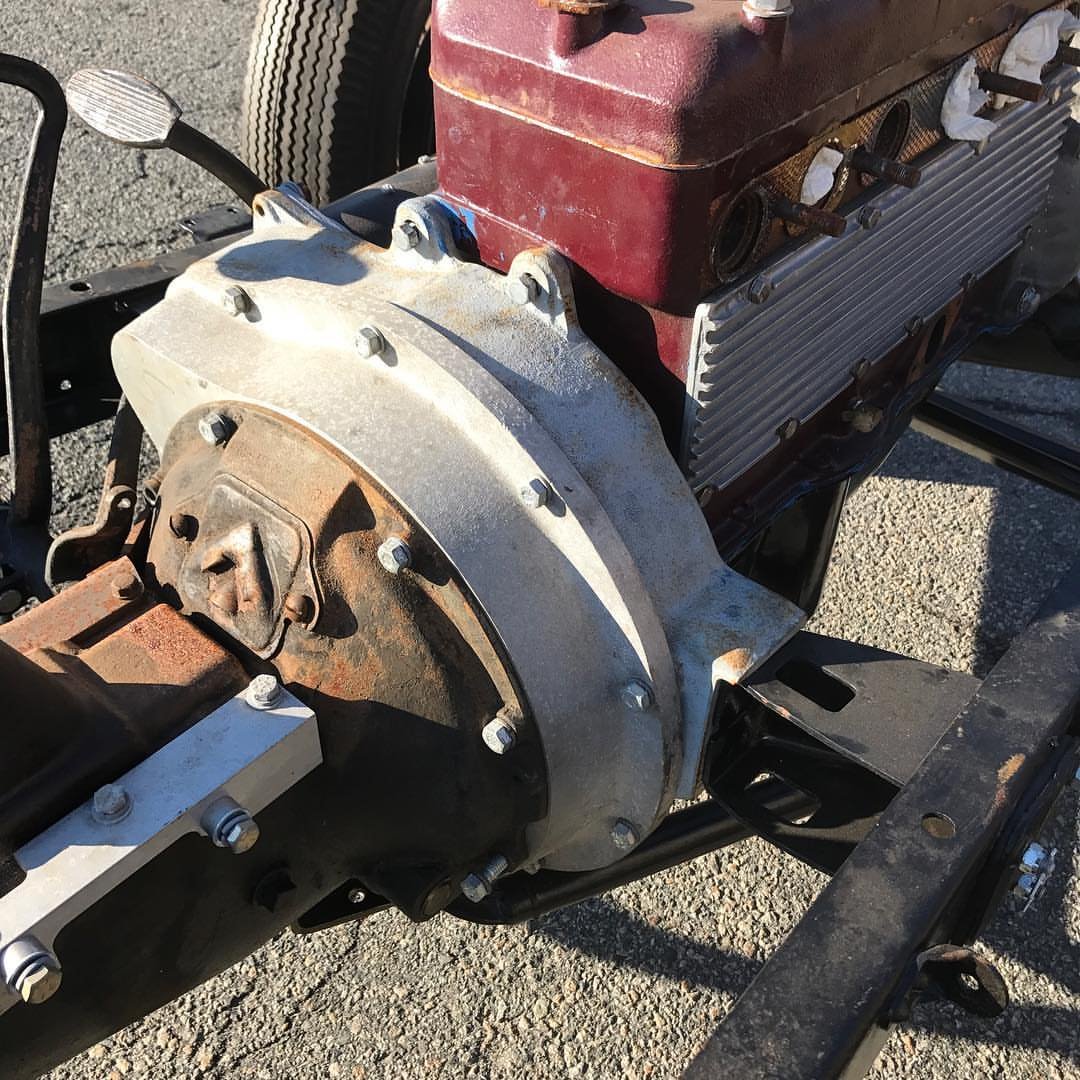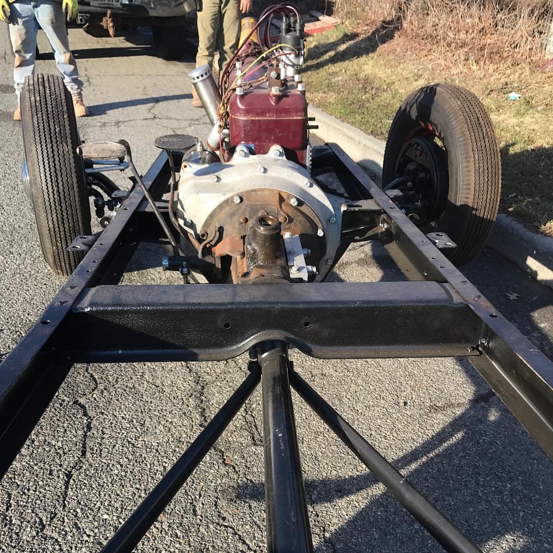 model a chassis dropped axle, new kingpins, new shackles, 40 spindles, juice brakes, reverse eye spring. Rebuilt 1932 ford B motor diamond block with C head, electronic ignition, V8 trans. Rebuilt model a rear with clings backing plates, reverse eye spring with new shackles. Clings pedal adaptor, and wish bone mount. 1935 wire wheels with brand new 6.00′ and 7.50 fire stone tires. The perfect start to a banger chassis .