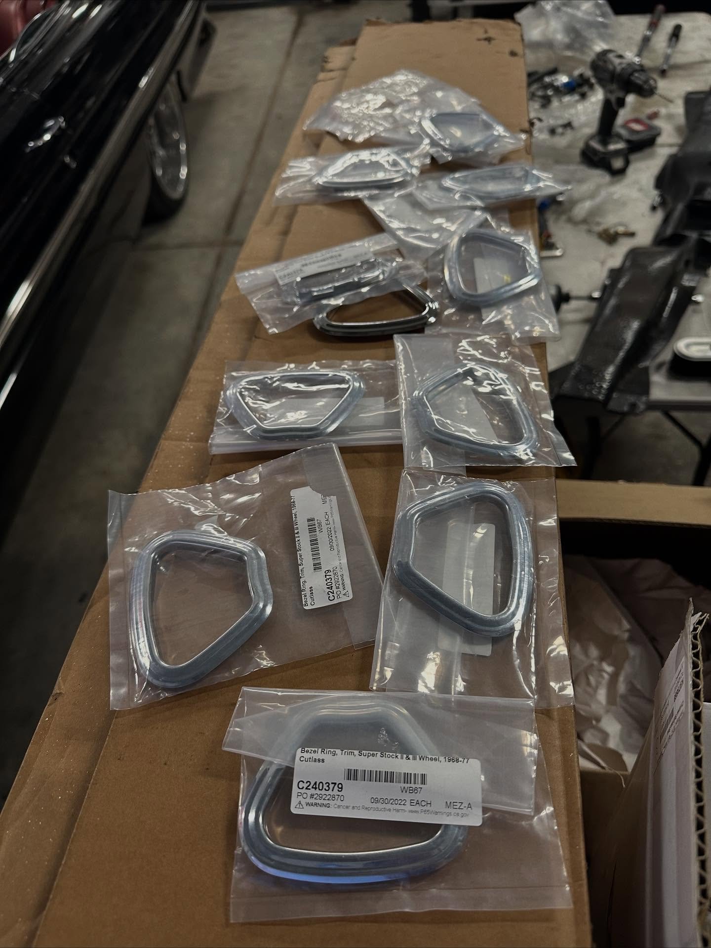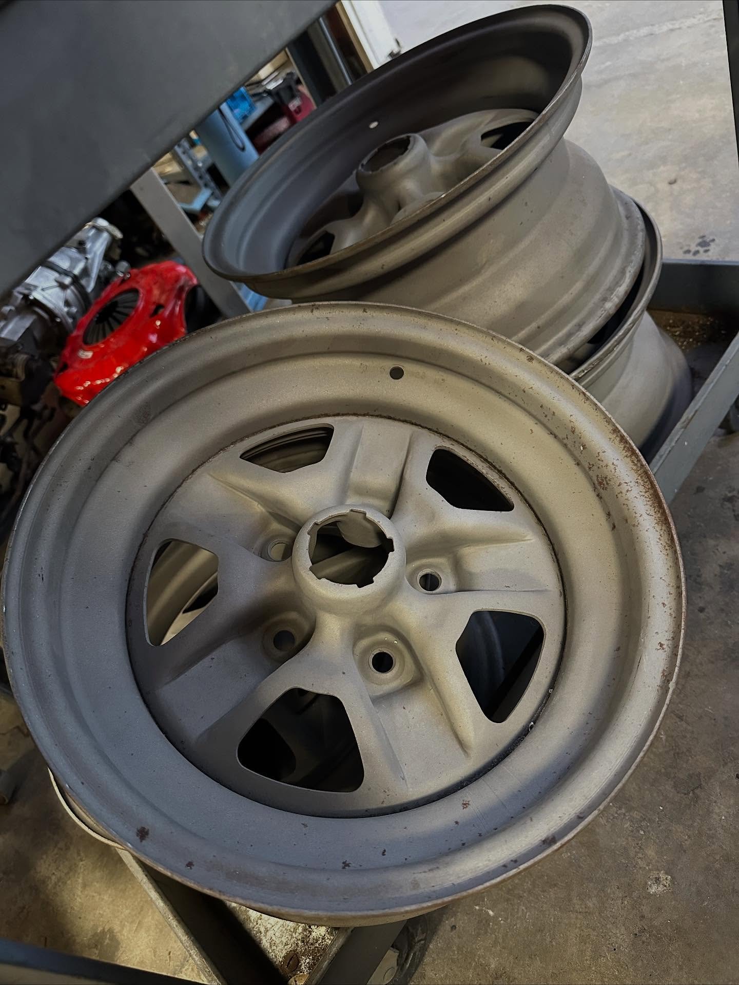 15×7 JJ code disc brake ralleys Sand blasted to bare metal ready for your color. Clean wheels with no bends or repairs. Comes with brand new stepped trim rings. Also comes with an incomplete set of the bezels. There are 13 out of 20.