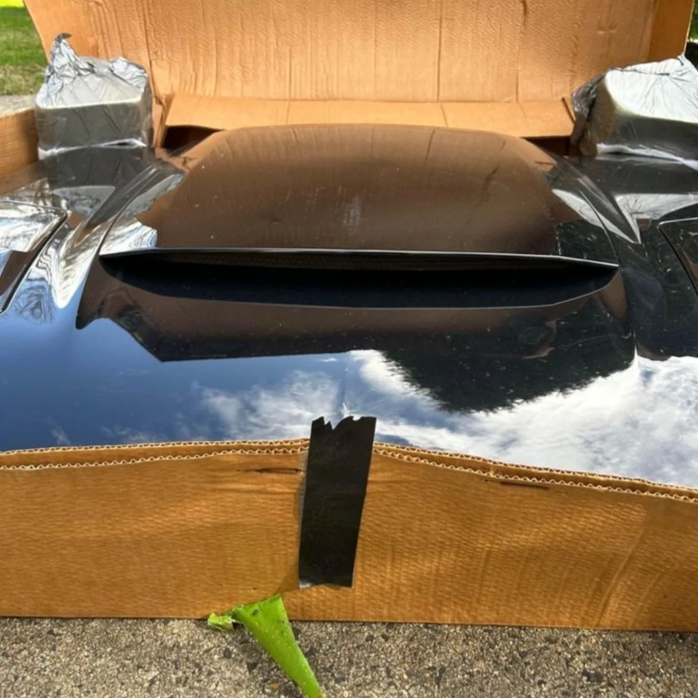 OEM hood off a shadow black 2017 ford mustang.