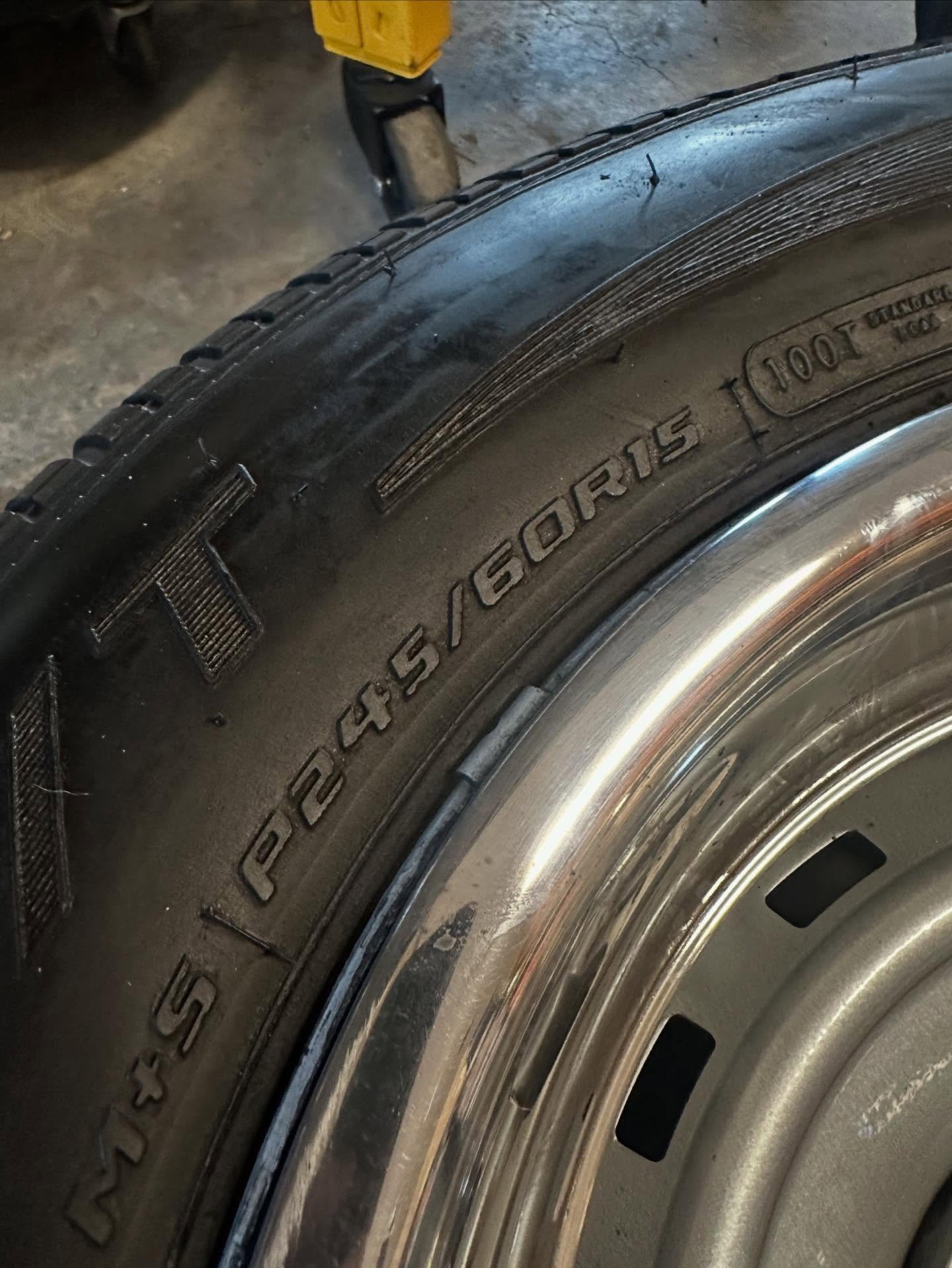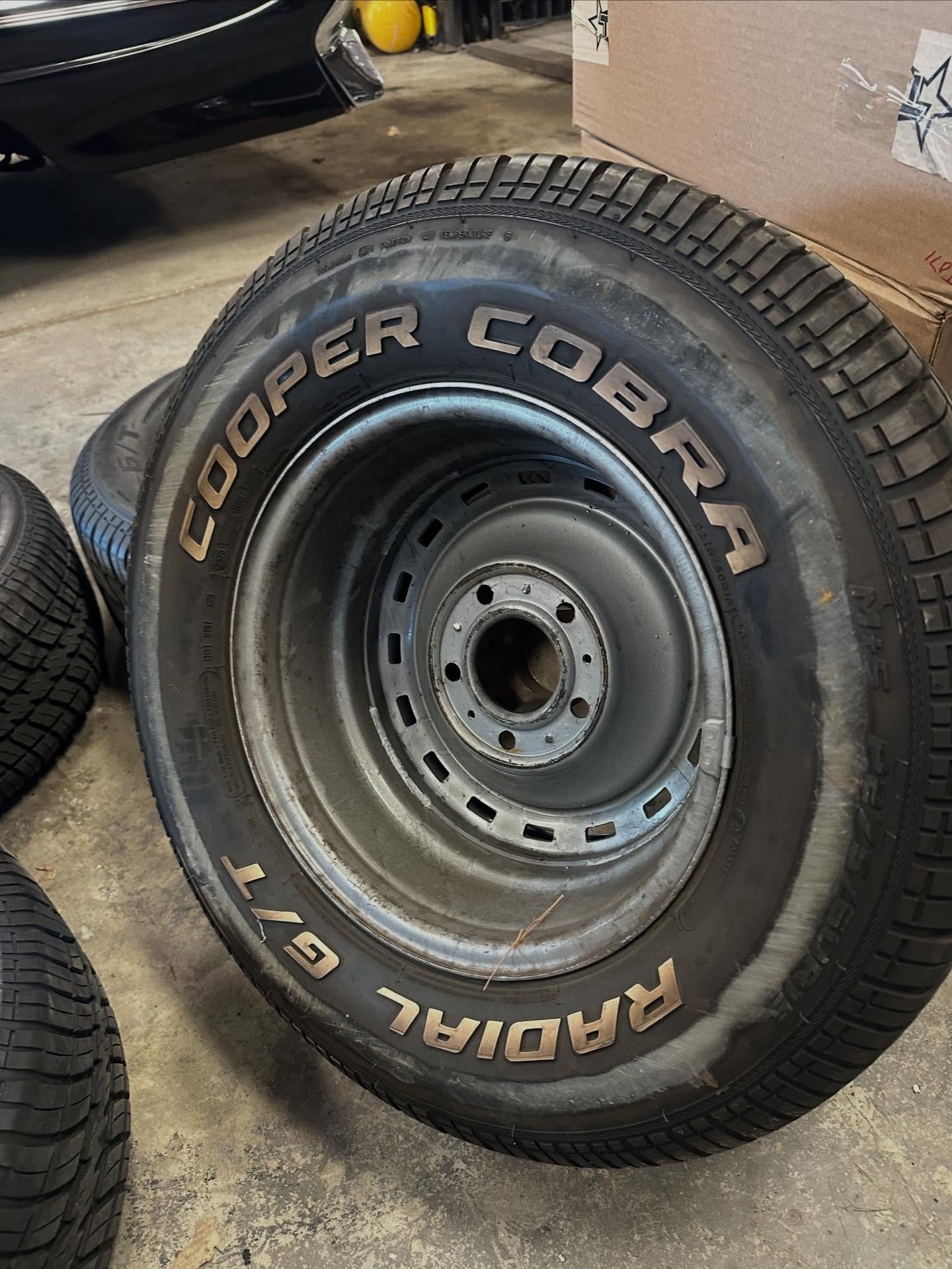 I have a set of 4 16×4.5 big ford 5×5.5 40s steelies that were just Powdercoated gloss black. 6.00×16 bf. Goodrich silver cloud wide white wall tires. They have plenty of tread just a little age and slight yellowing. Should clean up or run them as is. Also included is 4 mercury hubcaps. They had some dents and dings that were banged out and polished. Hand pinstriped lettering also.